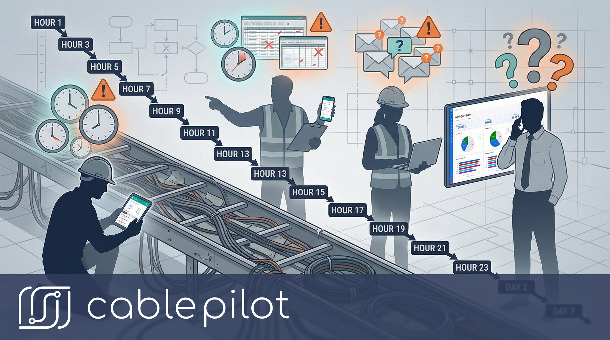 See how Cable Pilot creates a single source of truth for your electrical installation, from the first cable pull to final commissioning. Schedule a personalized demo with our experts today and learn how you can turn 5-day delays into 1-hour solutions.